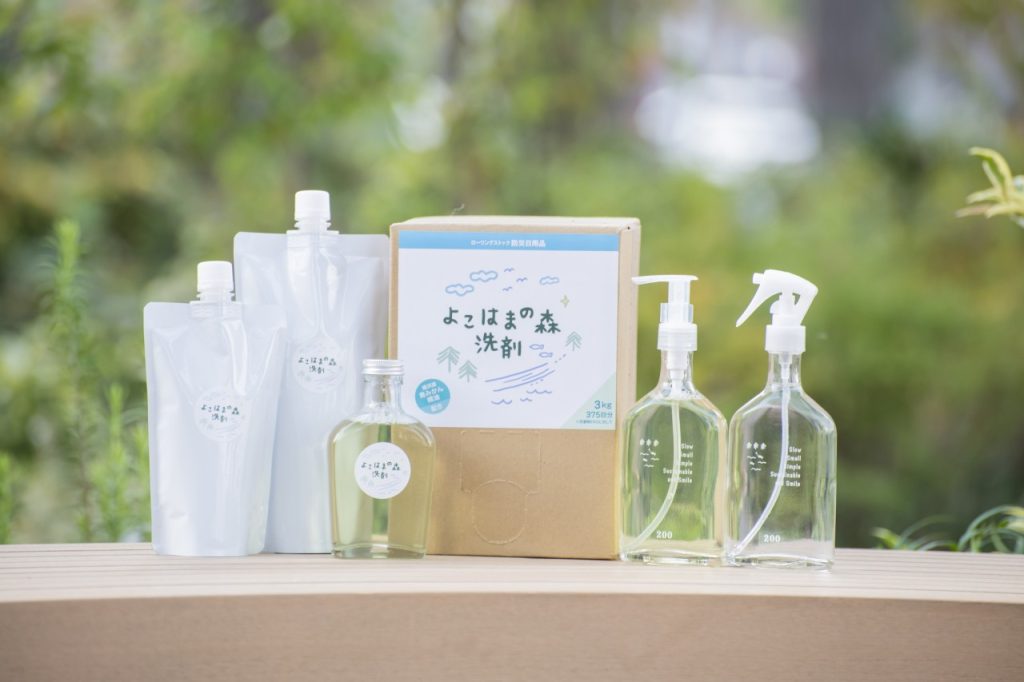 よこはまの森洗剤を水で希釈することで、キッチンやお風呂、床、窓のおそうじで使える多目的洗剤をつくることができます。